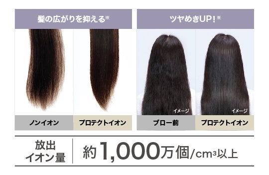 また、速乾ドライヤーの課題である乾燥や髪の摩擦による静電気はプロテクトイオンにより抑制し、髪のツヤやまとまり、髪ダメージが発生しにくい美しい髪へと導きます。