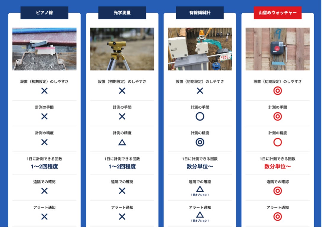 山留め工事は、掘削時に土砂崩壊を防ぐために重要な役割を担っています。従来の山留め壁の管理は現場作業員によるピアノ線の設置と目視確認、または測量機器による計測が行われています。そのため、タイミングによっては異常の発見が遅れるリスクがあり、重大事故につながることが懸念されていました。