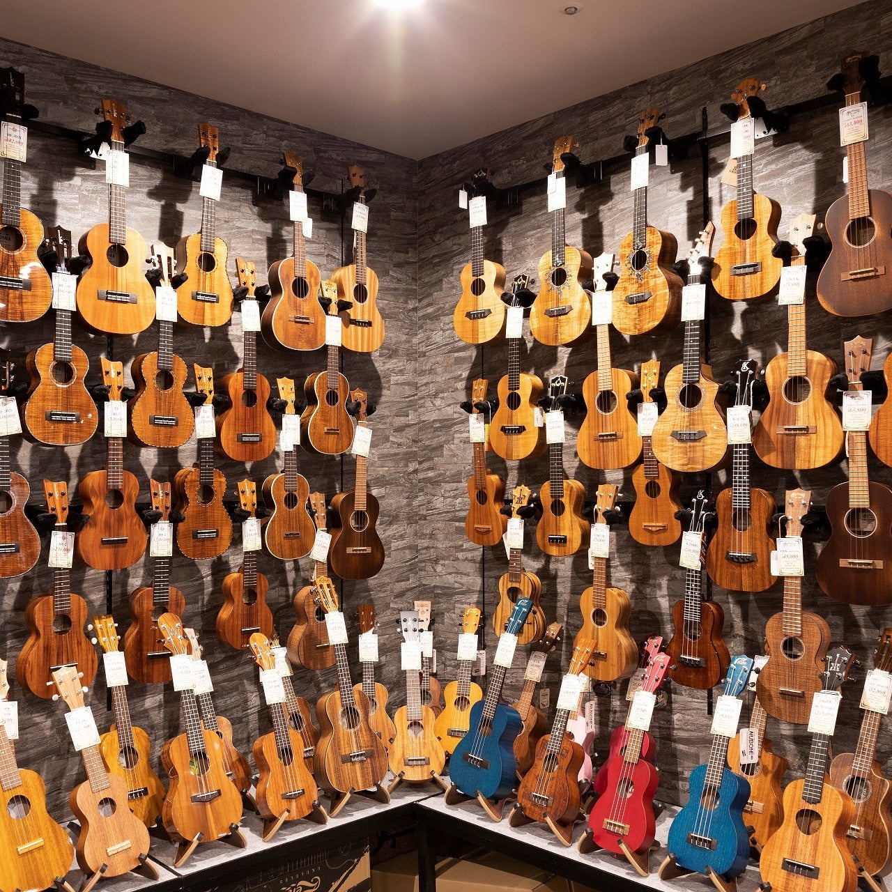 ウクレレ、クラシックギターのほかにベースやアンプも系列随一の品揃えで展開!!
