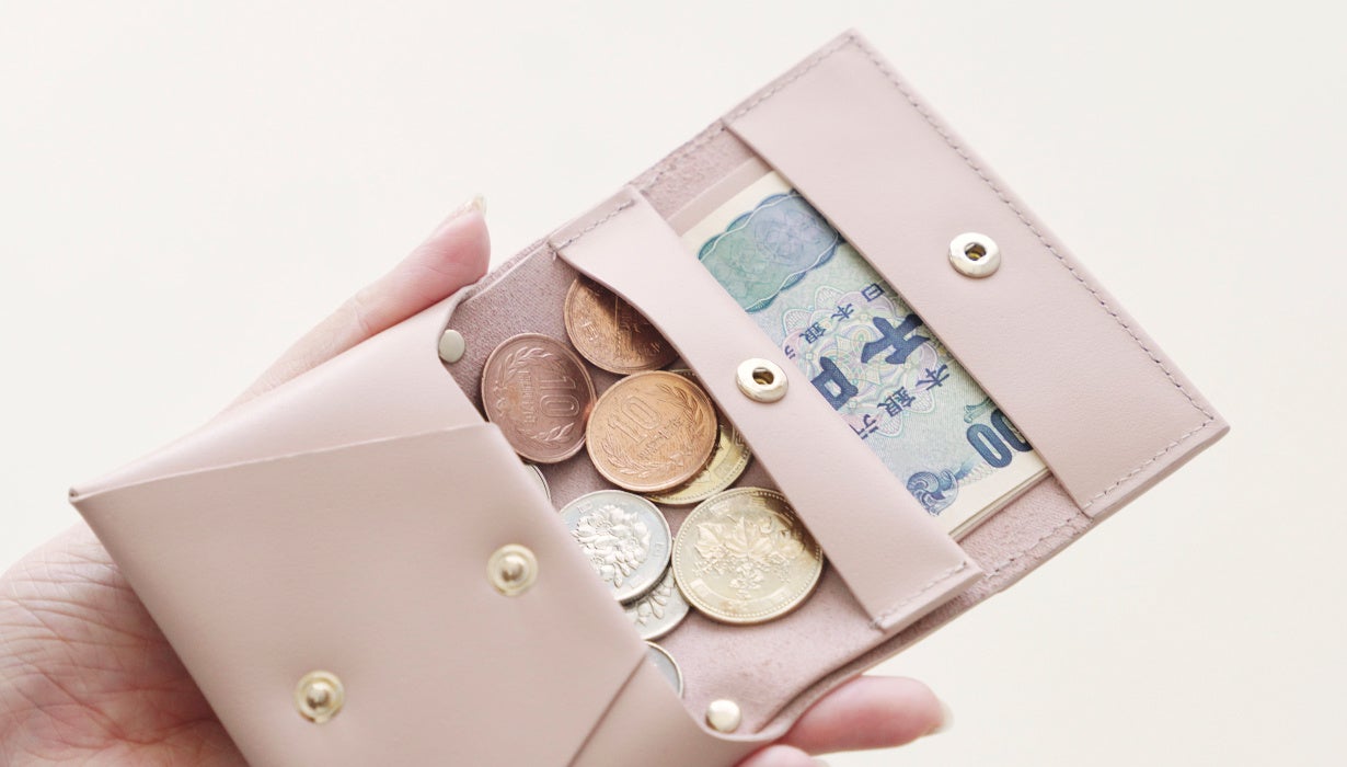 独自構造で硬貨が取り出しやすく、お札も折らずに収納可能。ミニ財布のお悩みを解決