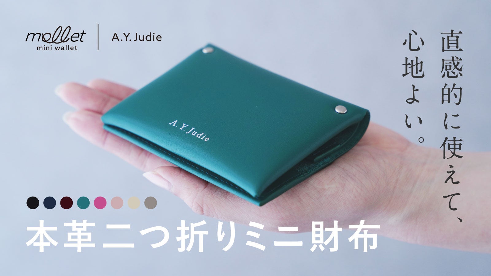 バッグの小型化やキャッシュレス決済の普及により巷には小さい財布があふれていますが、いまだに満足いくものが見つからないという声もちらほら耳にします。今回、私たちが得意とする細かな気遣いやデザイン力を活かした財布とは何かを考え、検討と試作を繰り返し、A.Y.Judieらしく使いやすさ満点のミニ財布「mollet(モレット)」が完成しました。
