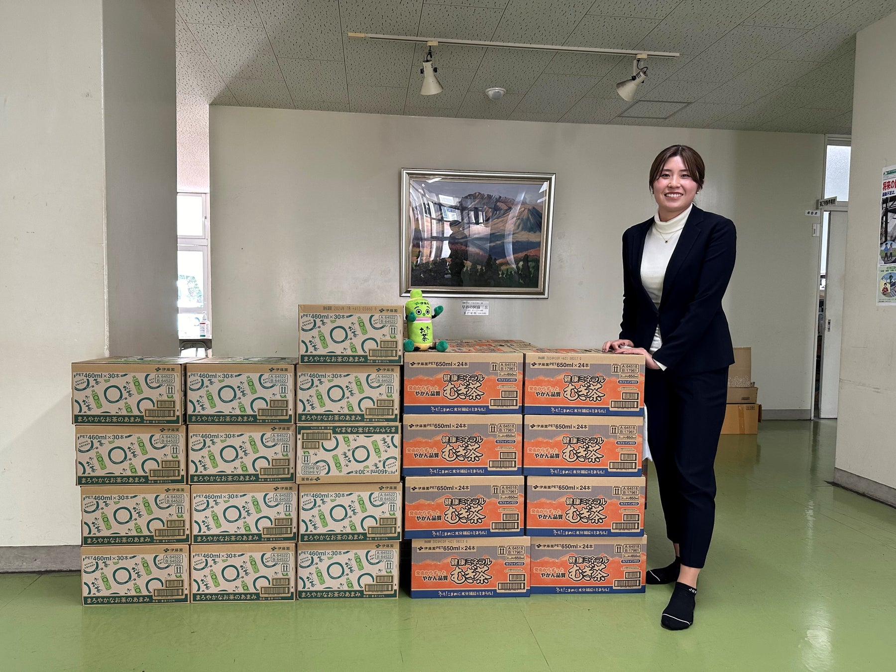 また、出身校である熊本国府高校の野球部が九州大会初優勝と活躍が目覚ましいこともあり、所属していたゴルフ部はもとより全ての部活動の益々の躍進を期待し、少しでも後輩を応援できればと考え、2024年1月5日に同校を訪れ所属先である㈱伊藤園の飲料製品(お~いお茶、健康ミネラルむぎ茶、エビアン等)1500本を物品寄付させていただきました。