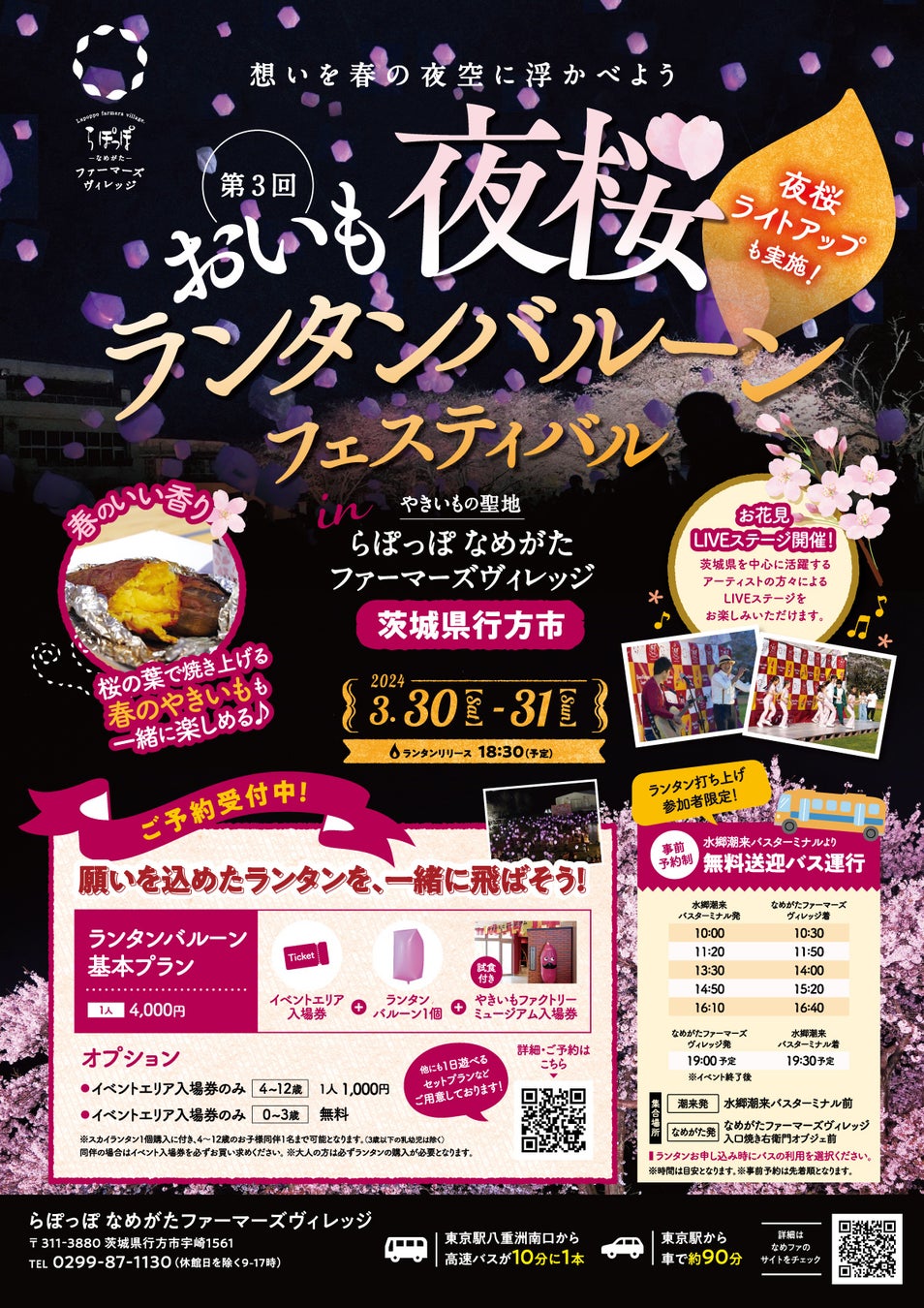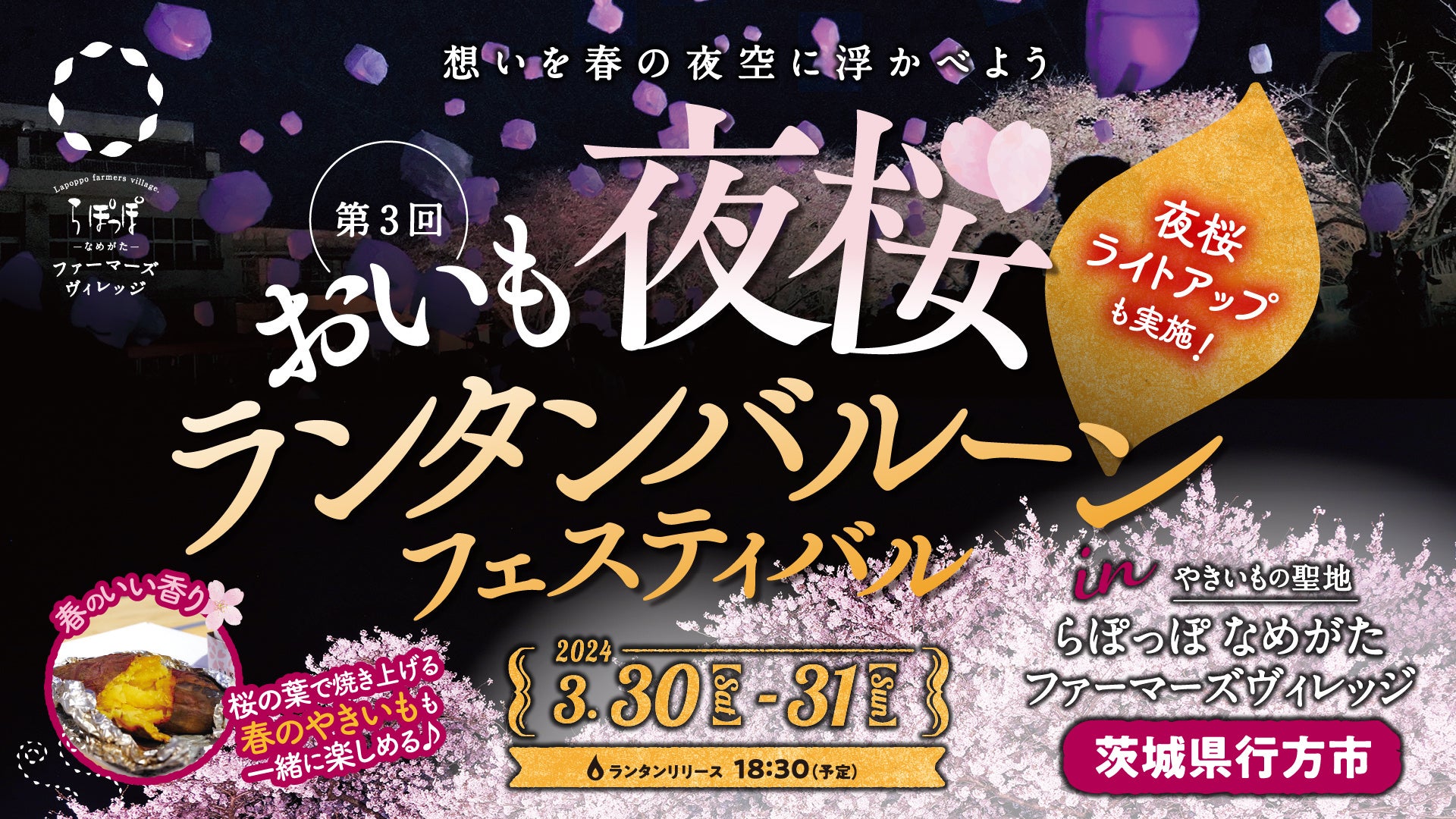 らぽっぽ なめがたファーマーズヴィレッジにて、毎年大好評の第3回「おいも夜桜ランタンバルーンフェスティバル」を開催いたします。