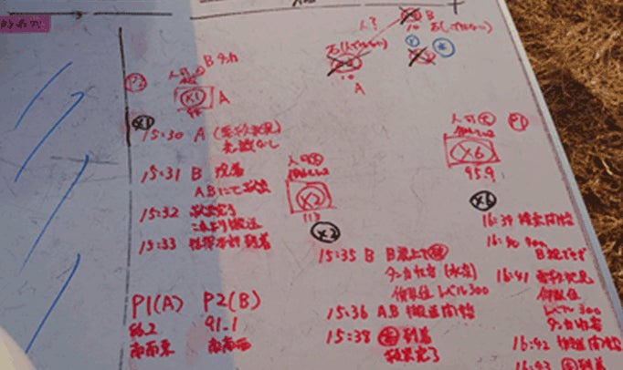 指揮本部タブレットのカメラを使用することで、指揮本部に集約した情報を部隊内で共有することができます。この機能によって、指揮台の内容や地形図、図面、写真など音声では伝えにくかった情報を視覚的に伝達することが可能となります。
