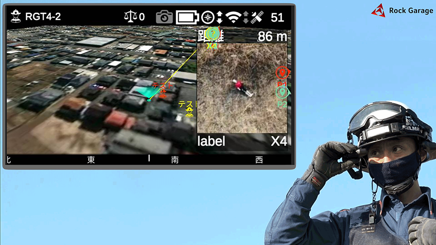 ドローンの飛行中は、そのカメラ映像を部隊内で共有することができます。これらの映像は自動的にAIにより処理され、人影が検出された箇所が強調されます。また、ドローンの映像はロックガレッジ独自の経路で伝送されるため、海外のサーバーに保存されることは一切ありません。