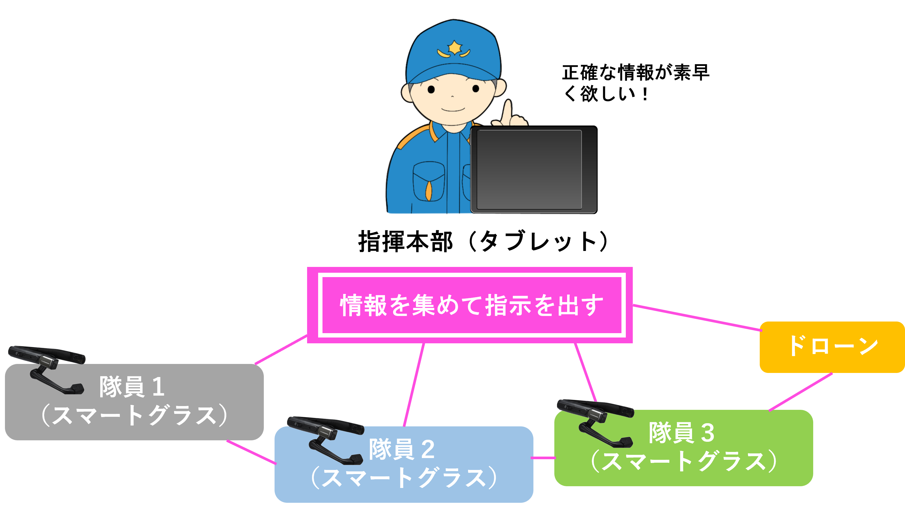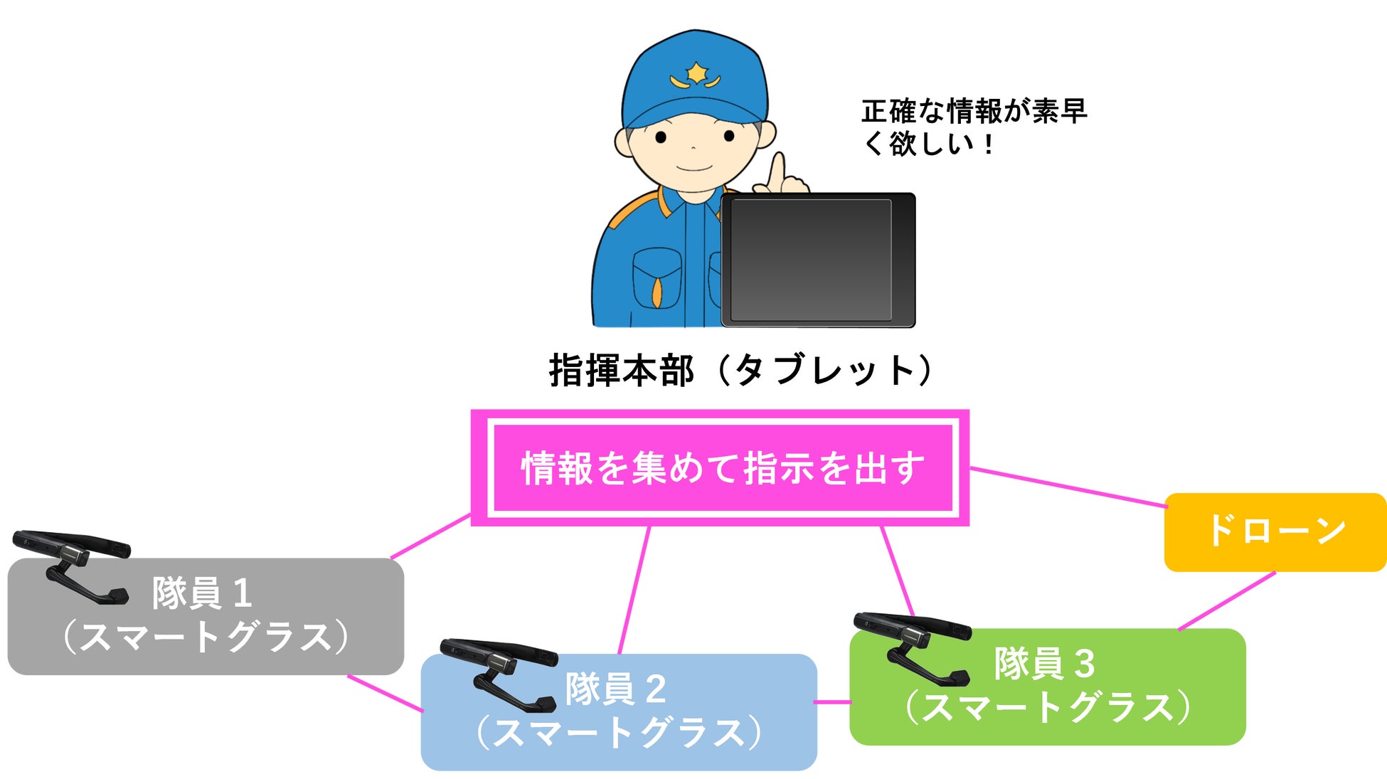 ドローンやXR、AIなどの技術が社会に広まりつつあり、それらの恩恵を受けられる機会が増えてきました。しかしながら、これらの製品を単独で利用したとしても現場指揮の効率化への寄与は限定的でした。そこで我々はこれらの技術を適切に統合し、現場指揮に最適なシステムを構築することにしました。