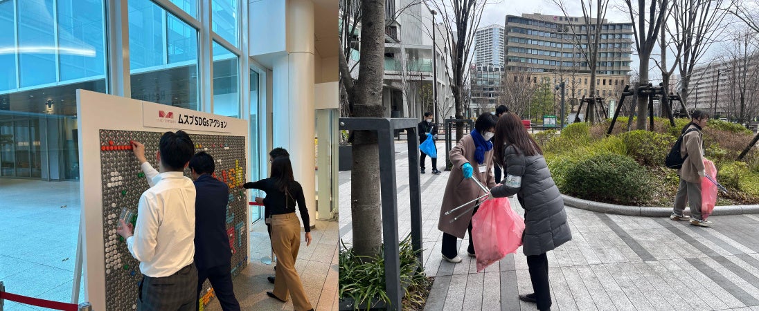 今年度の「ムスブSDGsアクション」は、①オフィスで廃棄されるペットボトルリサイクル導入とその