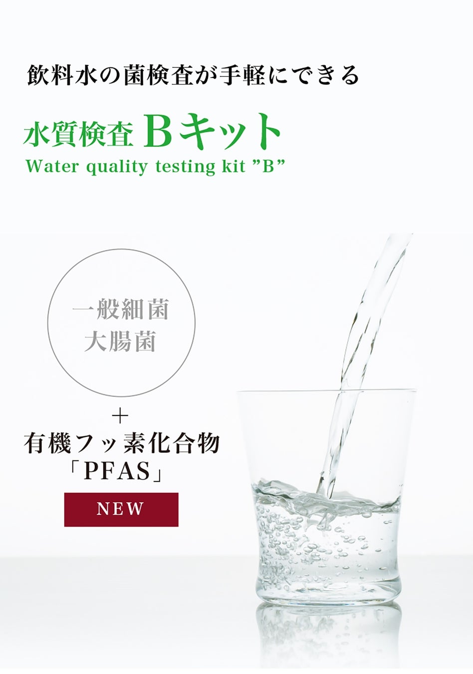 これまで販売していた「水質検査 Aキット」は、水道水に含まれている細菌を検査するものでしたが、今回あらたに販売する「水質検査 Bキット」は、水道水に含まれているPFASを検査できます。