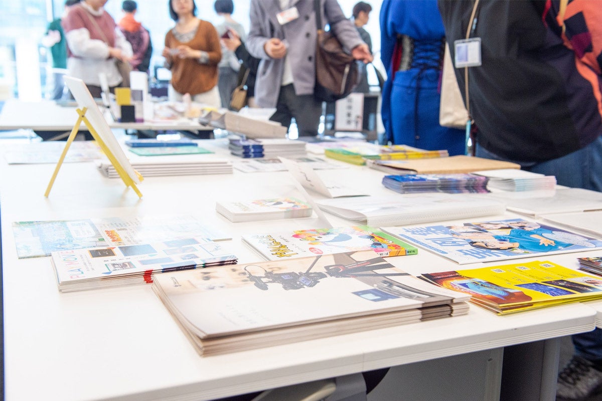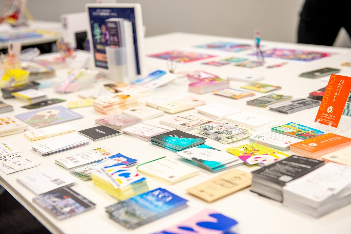 クリエイターの個性溢れる名刺やポートフォリオを置いて交流できるエリア。毎年多数のクリエイターのこだわりが詰まった名刺が置かれて盛り上がるエリアです。デザインや紙質にこだわった名刺を持ち帰り、来場者同士でSNSでフォローするキッカケに。