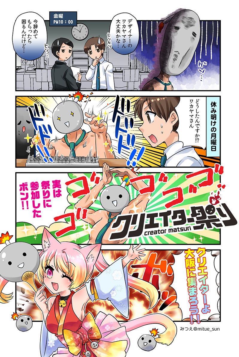 主催のカッシーです!クリエイター祭りは、大阪を中心に活動する招待制クリエイターギルド「THE CREATIVE」の有志のクリエイターが力を合わせて開催する、年に一回のお祭りイベントです。