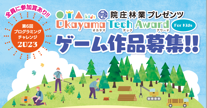 院庄林業が第6回プログラミングチャレンジ2023「院庄林業プレゼンツ Okayama Tech Award For Kids」を開催!