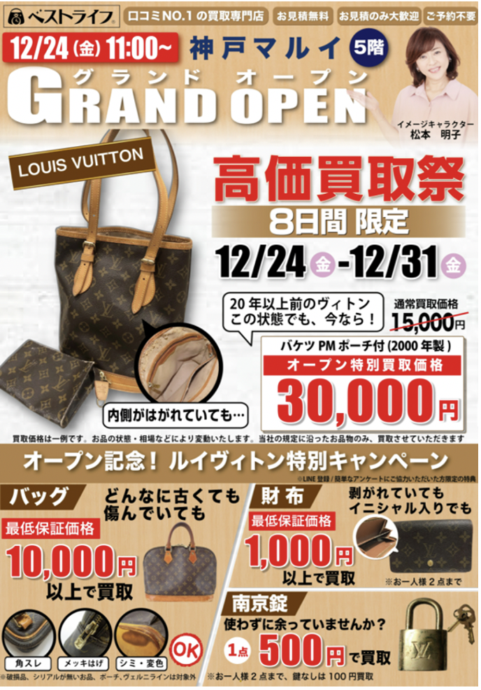 ブランド品等のリサイクル・リユース事業をおこなう株式会社ベストライフ(本社:大阪府大阪市、代表取締役:岩本元熙)が、「ベストライフ神戸マルイ店」を、2021年12月24日(金)にオープンします。