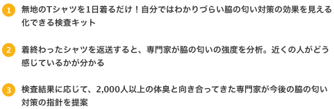 代表者自身が体臭で悩んだことをきっかけに2016年から開発を始め、2019年から3つのサービスを提供しています。
