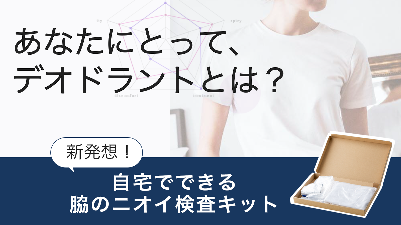 そこで今回、「デオドラント・制汗剤を使用した状態で1日Tシャツを着用する」ことで、「いつもの対策をした状態で、周囲の人が感じるほどの強いワキガ臭の有無を確認する」ことができる、ワキガ検査キットodorate APのデオドラント製品対応版を開発しました。