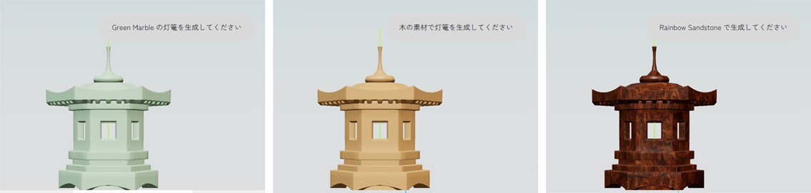 高品質な3Dモデルはアセットライブラリを基に生成されます。現在は限定的ですが、生成できるモデルは今後増えていきます。