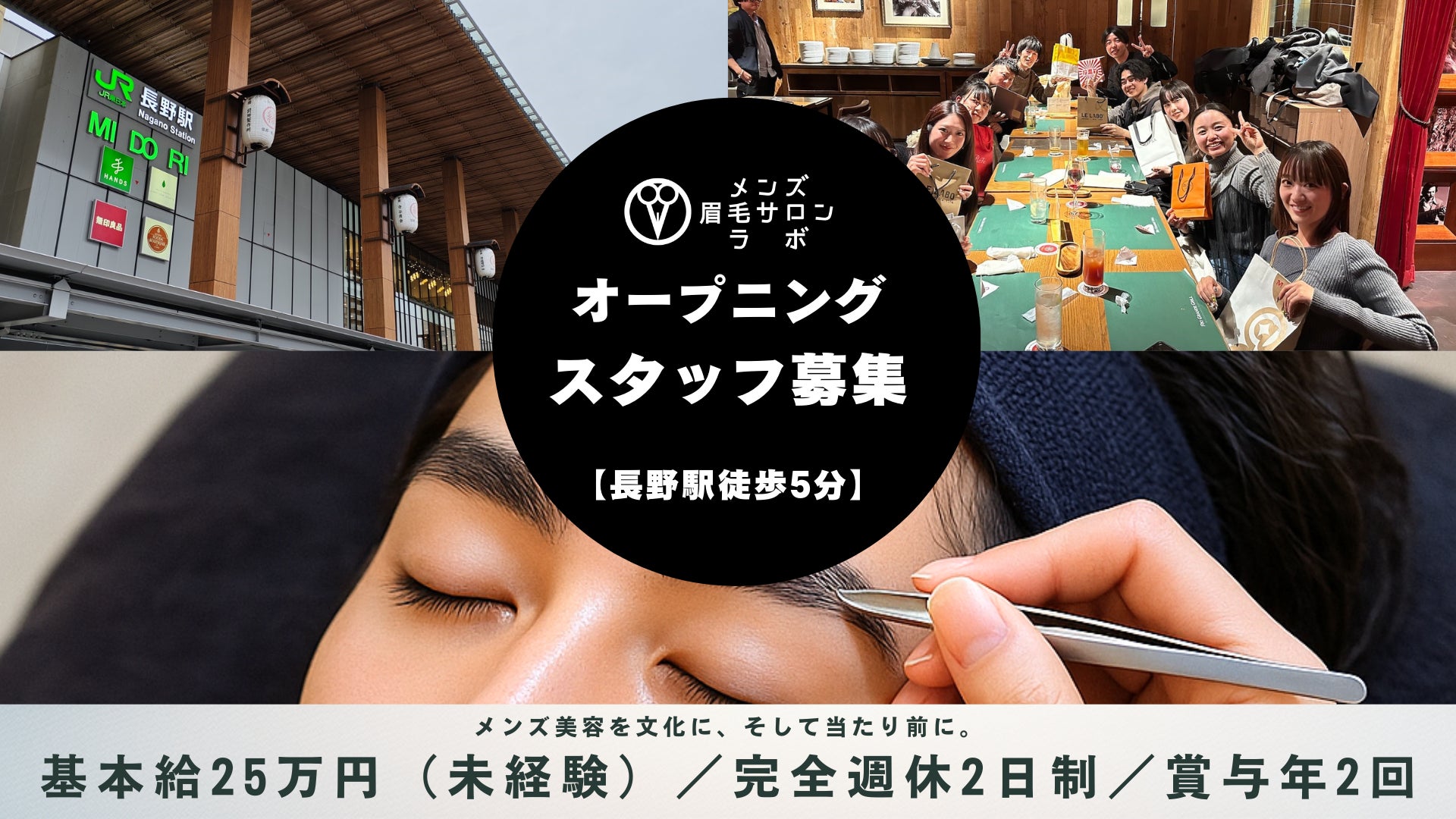 2026年長野駅前に新店舗をオープンする男性に特化したアイブロウサロン「メンズ眉毛サロンラボ」が美容師免許保持者のオープニングスタッフ募集を開始しました。長野市で免許をお持ちの方はぜひご応募ください。