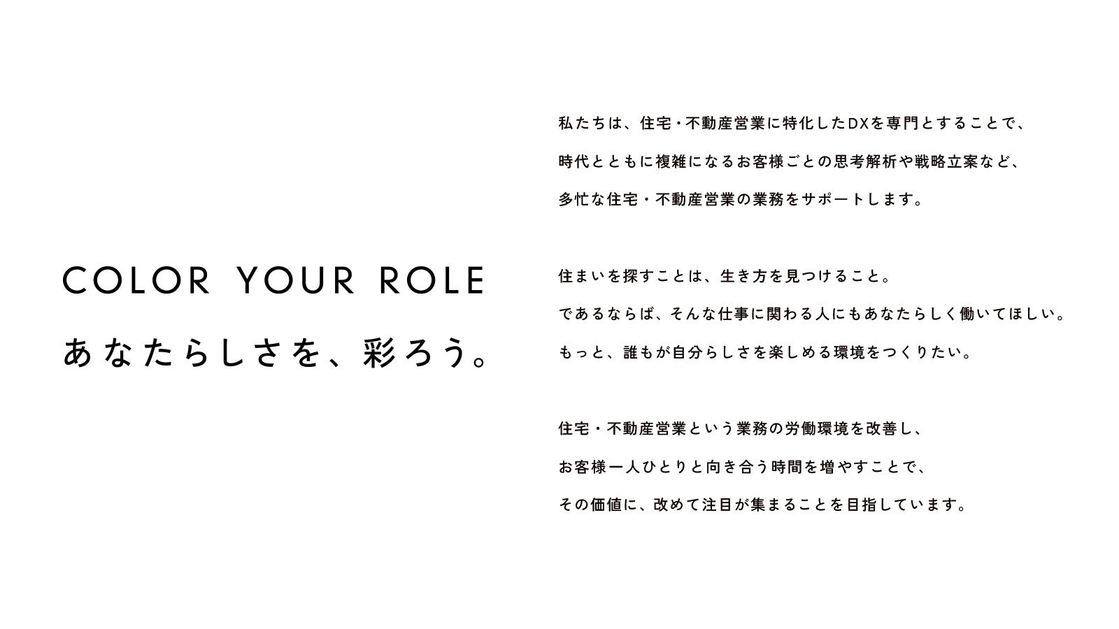 住宅・不動産を「場所」として捉えるのではなく「居場所」として考えると、別な側面が見えてくるのではないかと考えました。 物件を探しているお客様、家を建てたいと思っているお客様は、それぞれどんな未来を目指そうとしているのか。 住宅・不動産営業の方はその仕事で、何を実現していきたいのか。弊社社員も含めて業界全体が「自分らしさを楽しめる環境」になるために必要なことを行う企業でありたいという意志を込めています。