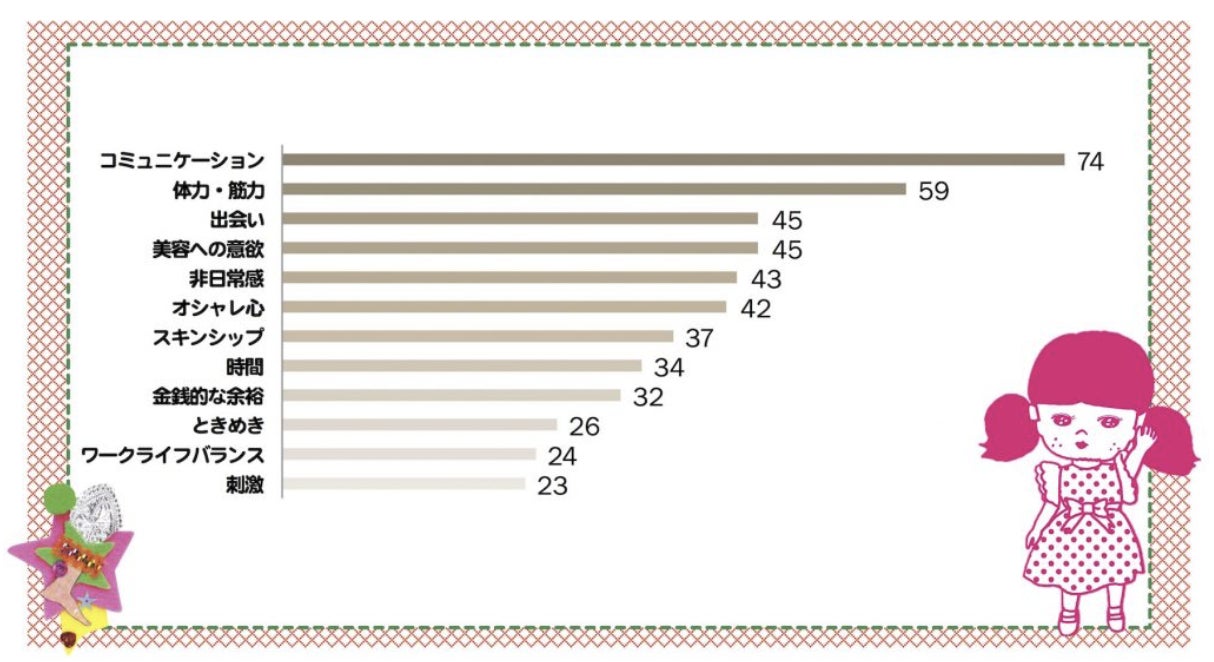 コロナ禍で私たちはたくさんのモノ・コトを失ってきました(女性への調査結果を下に掲載)。他愛もない会話、おしゃれをして出かける機会、ときめく場所……。だから今年は、そんな失われたモノ・コトをどーん!とプレゼントして、みんなを元気にしたい!!