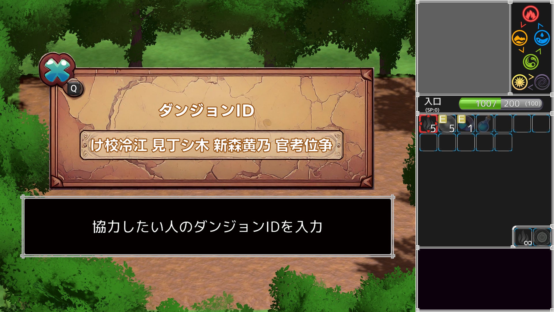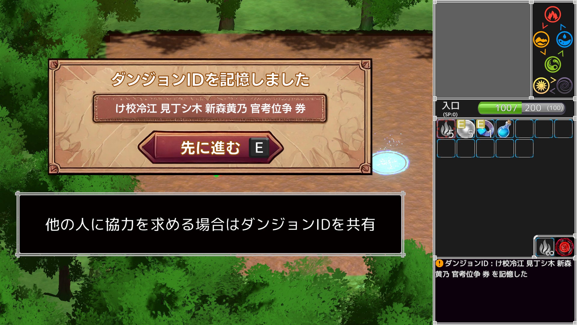 メインプレイヤーのダンジョンID(文字列)をチャットなどで共有すると、誰でもそのダンジョンをプレイでき、メインプレイヤーをサポートすることができます。