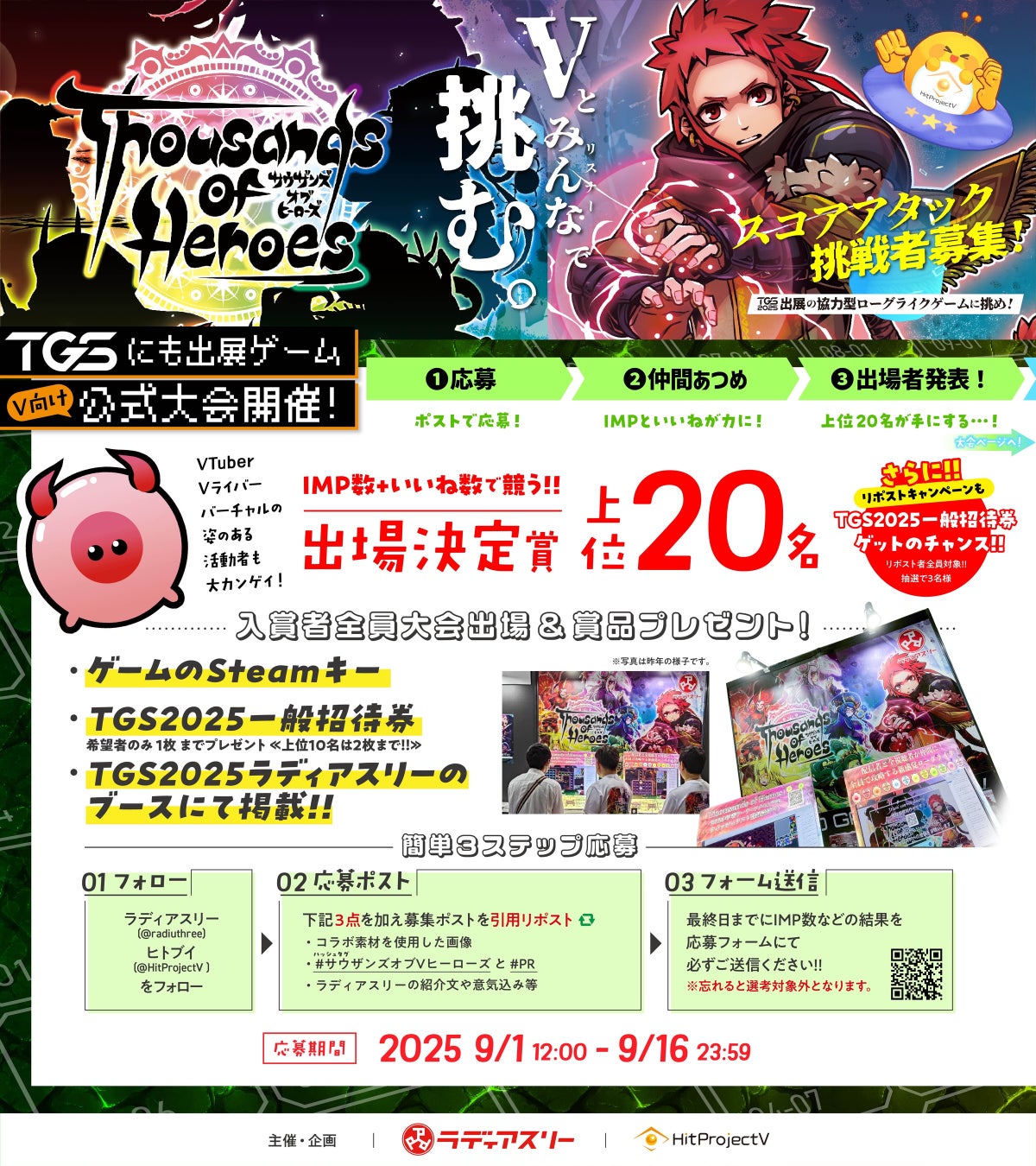 新作ローグライク「Thousands of Heroes」アーリーアクセス公開決定&VTuber向けイベント開催&TOKYO GAME SHOW 2025出展!
