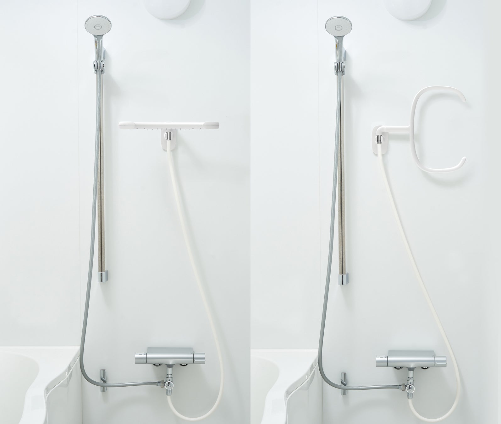 利便性:使用中に人に当たる突起を無くした他、U字型シャワーヘッドをマグネットホルダーから簡単に外せるように、一般的な取付構造に変更。また、マグネットホルダーに指掛かりを設けました。