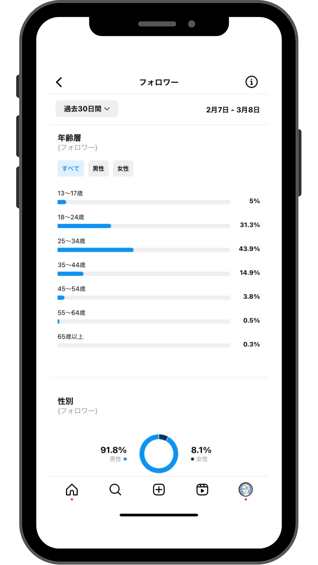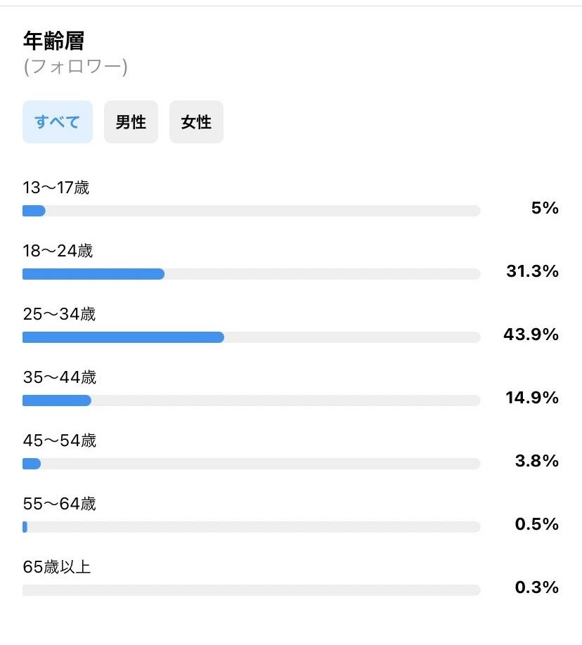 本アカウントでは20~30代の男性が多く、特に社会人に見られており、価格の安い商品はもちろん高価格帯の商品でもエンゲージメントが高い数字を獲得しています。