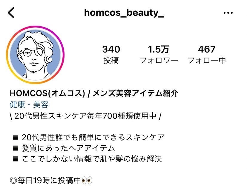 20代~30代の社会人の男性から圧倒的に支持される総フォロワー2.2万人の男性の肌や髪の悩みを解決し、外見を整える情報に特化したメディアアカウントでの商品PRサービス開始!