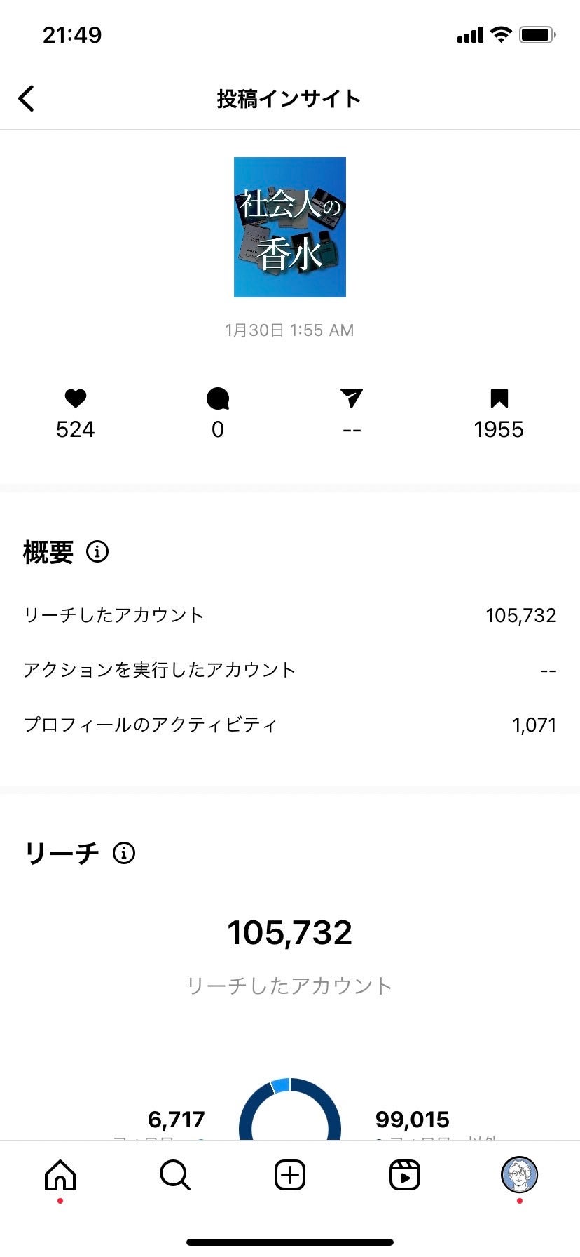 本アカウントではスキンケア、ヘアワックス、香水など男性の外見を整えるための商品との相性が良く、最も拡散された投稿では1投稿で100万インプレッションを獲得しています。