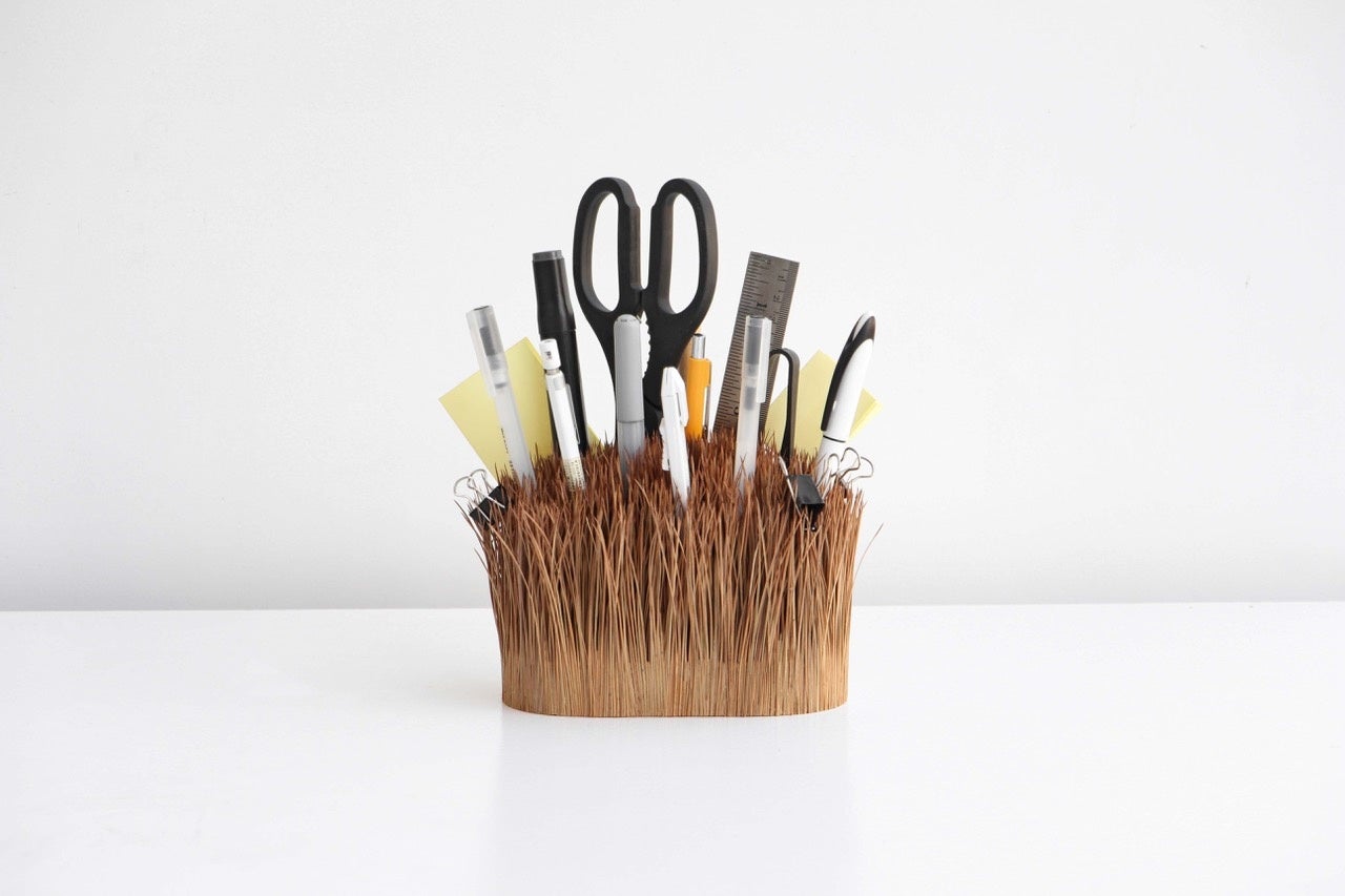 「デザイン」するのではなく、松葉の自然な特性を捉えて、身近なものに新しい価値をもたらしたいと考えました。素材をそのまま使用することで、Outside / Insideの自由に流れるフォームは、ユーザーがオブジェクトを使用する独自の解釈を思い付くように促し、好奇心と再発見の感覚を際立たせています。