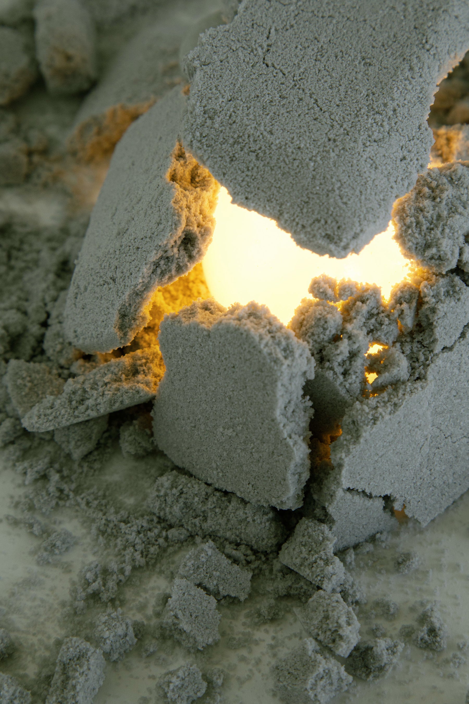 受賞アーティストのお二人が「自然界にみつけた魅力を突き詰めた作品。石は、古来より人の身近にあるにも関わらず、硬く冷たく無機質で、どこか遠い存在。そんな石という素材の価値を探求し、消耗という行為を結びつけることで、人の身近に置ける姿をデザインした。」とお二人は語ります。