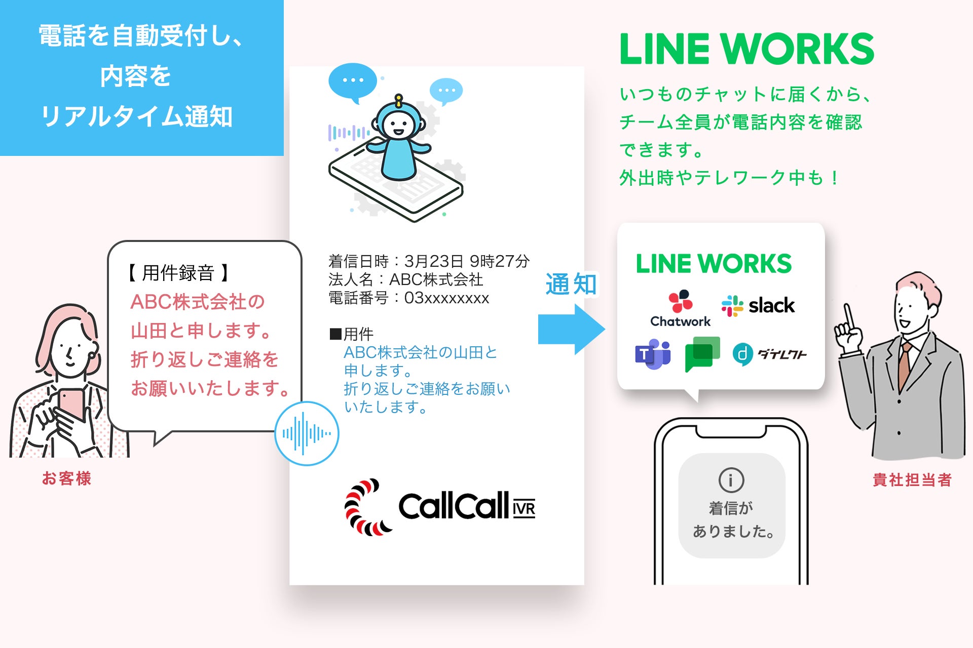 【LINE WORKS×電話DX】電話内容を文字起こししてLINE WORKSにすぐに通知。