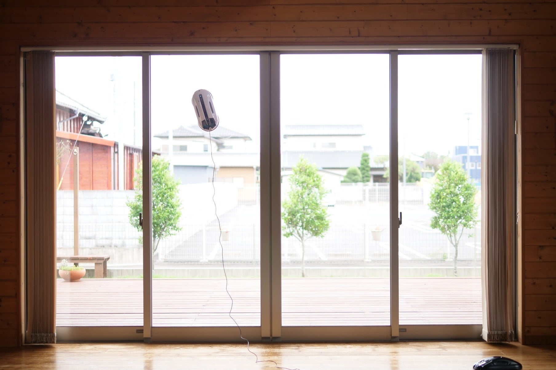 ■掃き出し窓一面なら約5分で掃除が完了。乾拭きと水拭き(真水or専用洗剤)の2種類のモードを搭載してます。