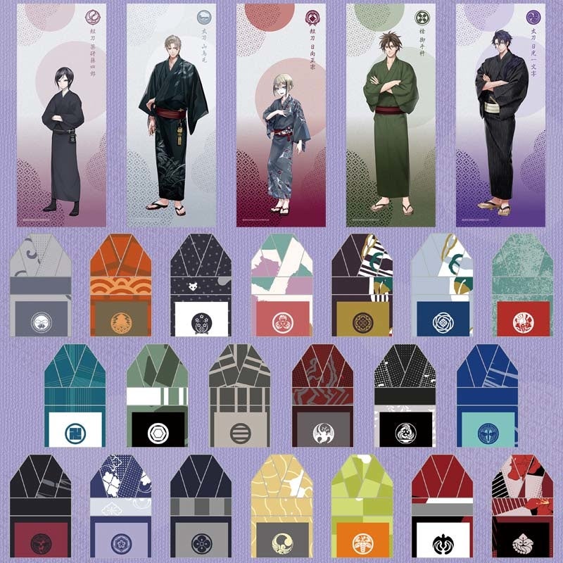 今回のてぬぐいコレクションは、前回に引き続き「軽装」バージョンで新たに全25振りの刀剣男士が登場。今回もA賞には軽装姿の刀剣男士のフルカラーてぬぐい(全5種)、B賞には軽装の着物の柄を元にしたオリジナルデザインのてぬぐい(全20種)をラインナップ。B賞はそのまま飾ってもかわいらしい“着物型”に折り込んでお届けいたします。