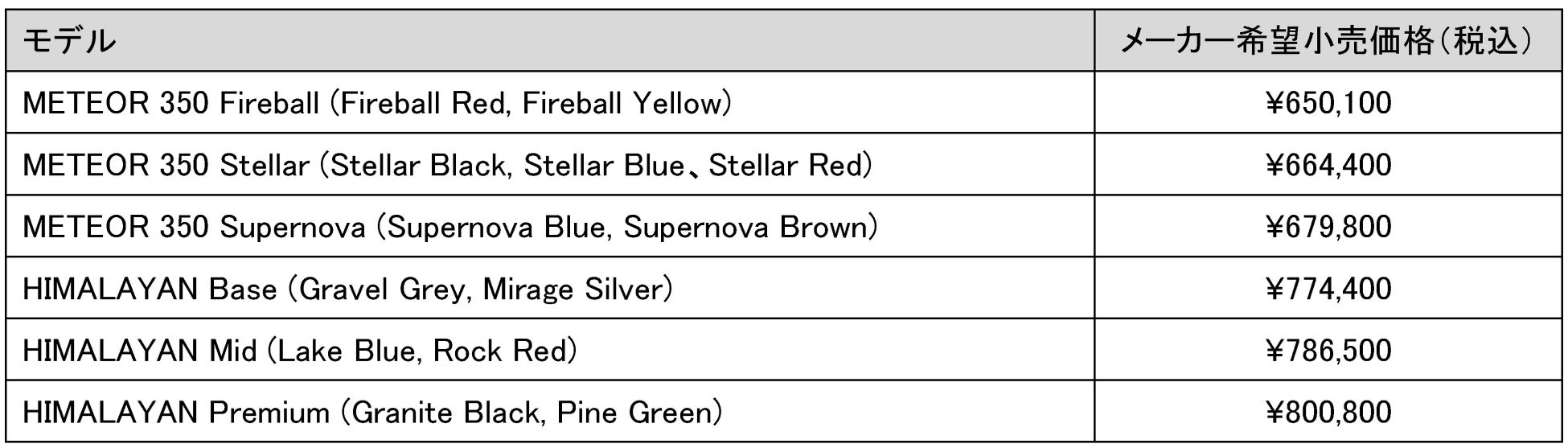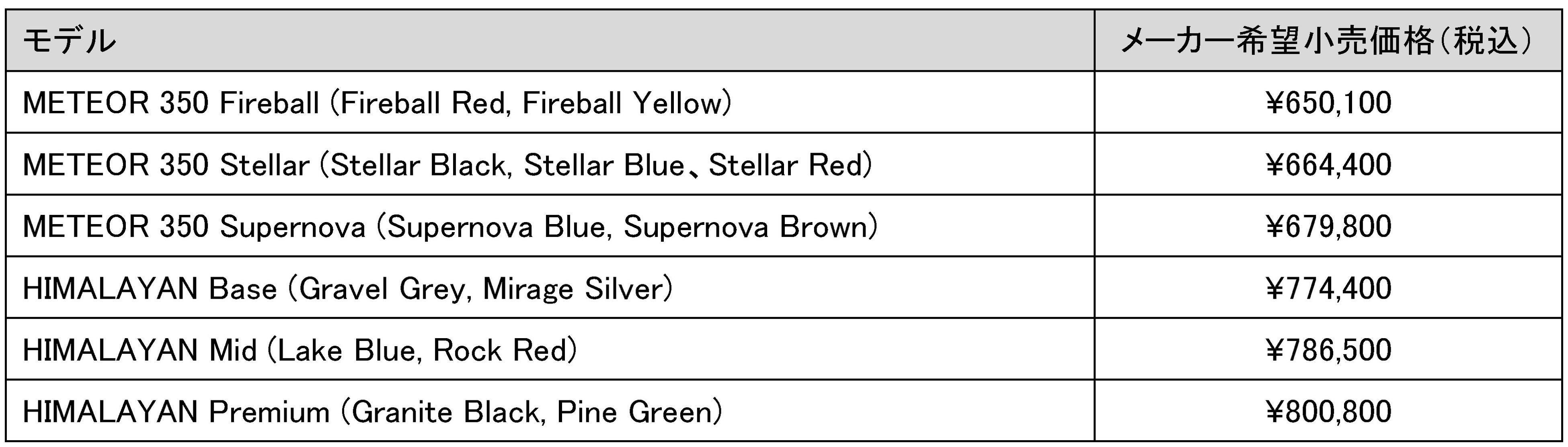 ロイヤルエンフィールド一部モデルの仕様と車両価格の変更に関して