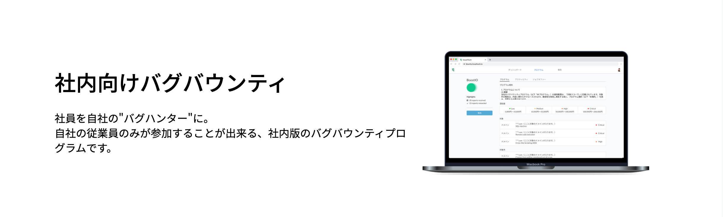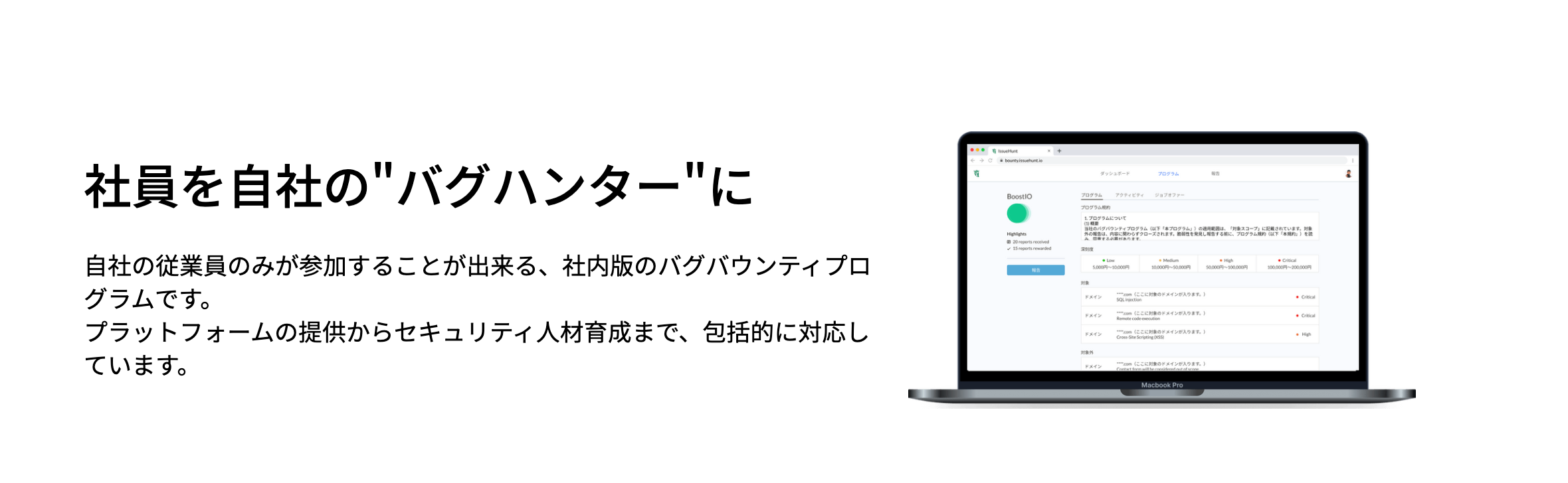 複数の国内大手企業様より「いきなり社外のバグハンターを活用することはハードルが高く、まずは社内で実践したい。」というご要望を頂いております。そのため、弊社では「社内に閉じたバグバウンティの実装」を可能とするプロダクトの提供を今春より開始致します。