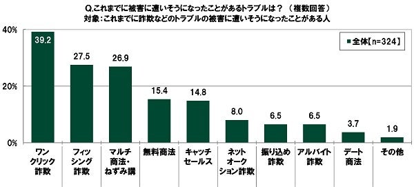 - 「詐欺などのトラブルの被害に遭ったことがある」20代の5人に1人 経験した詐欺被害TOP4は「マルチ商法・ねずみ講」「ワンクリック詐欺」「無料商法」「ネットオークション詐欺」