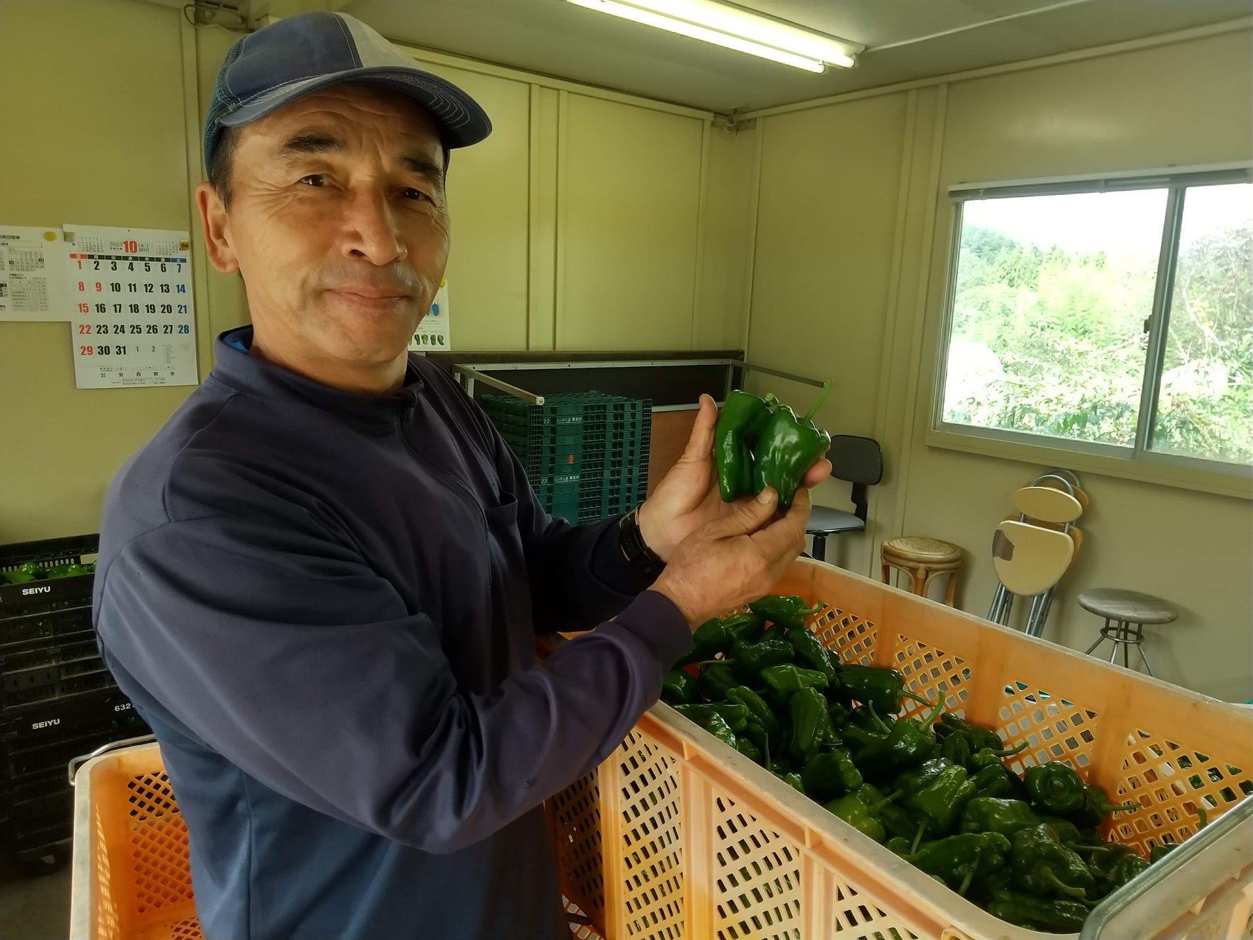 社会福祉協議会で長年働いていたが早期退職し、夫婦で55歳から農業を経営。露地、ハウスでピーマンを生産し、生産量は福島県トップクラス。また地元農家さんの紹介でクラフトビールのホップの生産もスタートし、現在は7種類に品種を拡大して生産している。