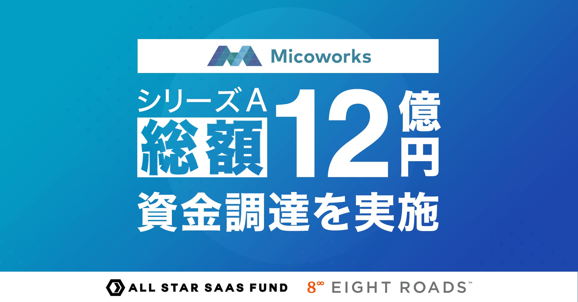 顧客体験のパーソナライズを実現するコミュニケーションプラットフォーム「MicoCloud(ミコクラウド): https://www.mico-cloud.jp/」を開発・提供するMicoworks株式会社(本社:大阪府大阪市北区、代表取締役:山田 修、読み:ミコワークス、以下「当社」)は、ALL STAR SAAS FUND、Eight Roads Ventures Japanを引受先として第三者割当増資及び新株予約権付社債により、総額約12億円の資金調達を実施いたしました。今回の調達により、当社の累計資金調達金額は約20億円となりました。