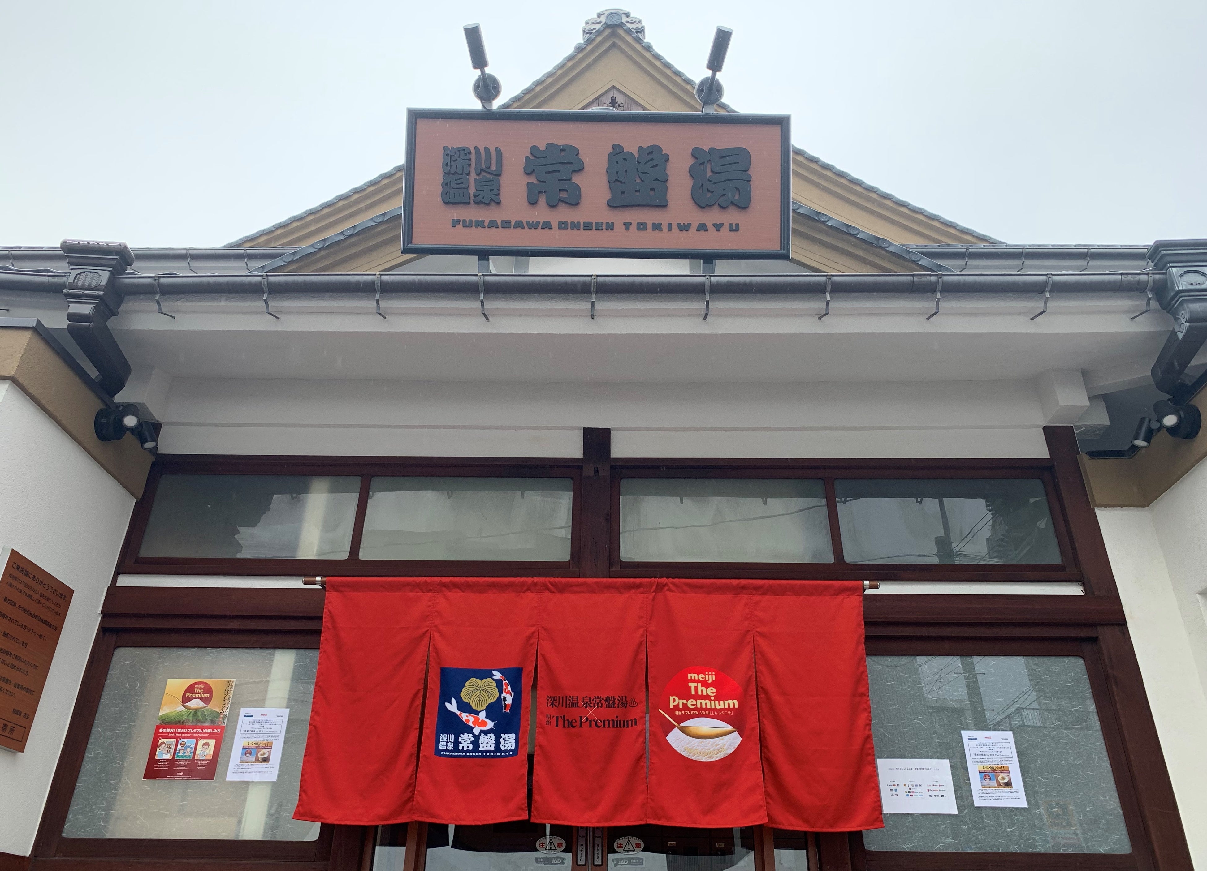 深川温泉 常盤湯(江東区)を1週間限定ジャック※「雪どけ銭湯 by 明治 The Premium」11月26日(日)より開催中 湯上りは「雪どけプレミアム」がおいしい。体験の全貌を初公開