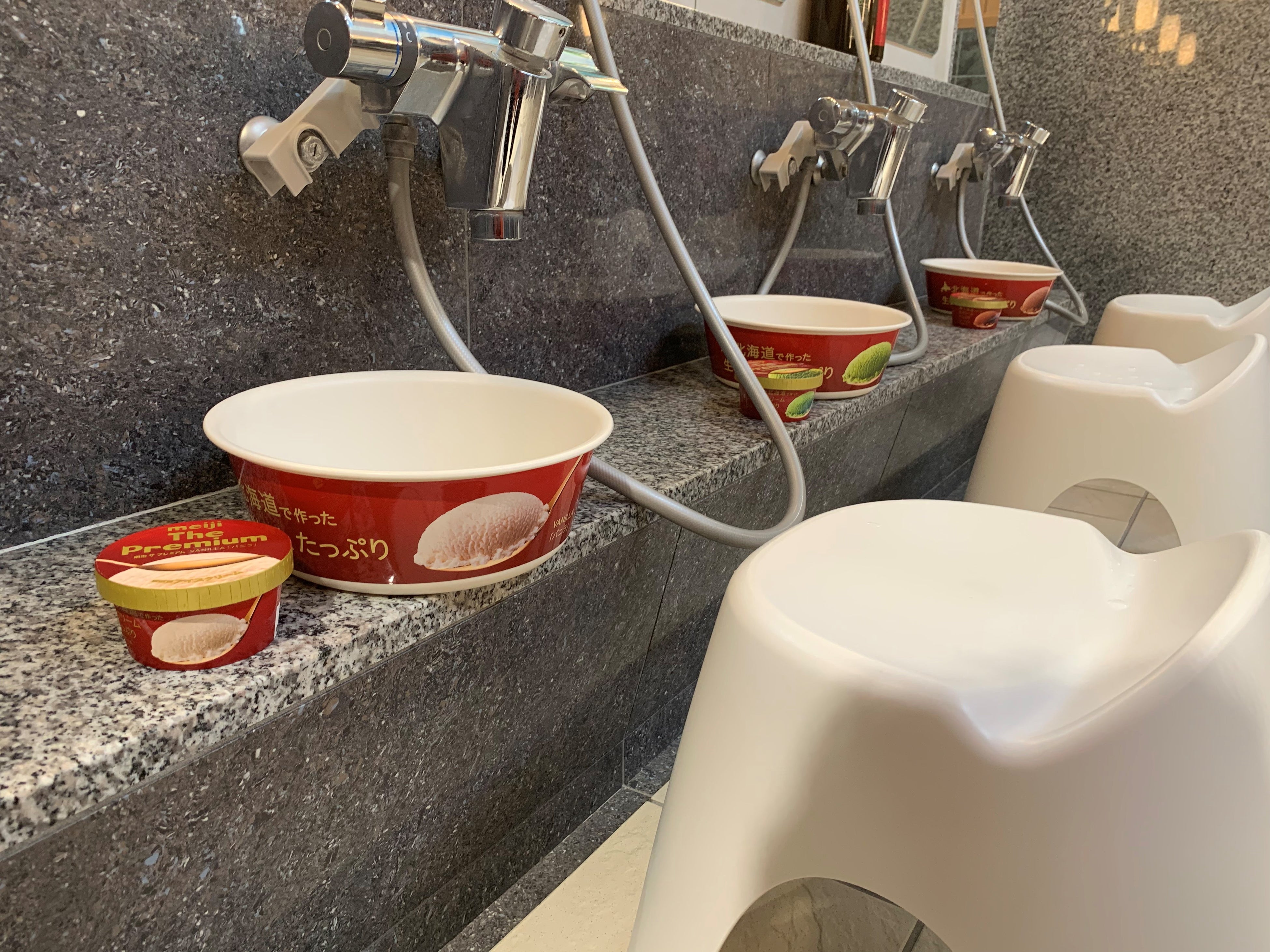 70分を時計で確認しながら、お風呂やサウナをお楽しみください。「明治 The Premium」は、キャッチコピー「ニッポンの山盛りプレミアム」とともに富士山をモチーフに展開しており、浴場の大きな富士山のペンキ絵が期間限定でアイスモチーフに変更されます。また、風呂桶も「明治 The Premium」仕様になるほか、バニラ・チョコレート・抹茶のフレーバーにあわせて白・茶・緑の3色の湯船も登場。湯上りの「明治 The Premium」が連想され、期待感が高まります。
