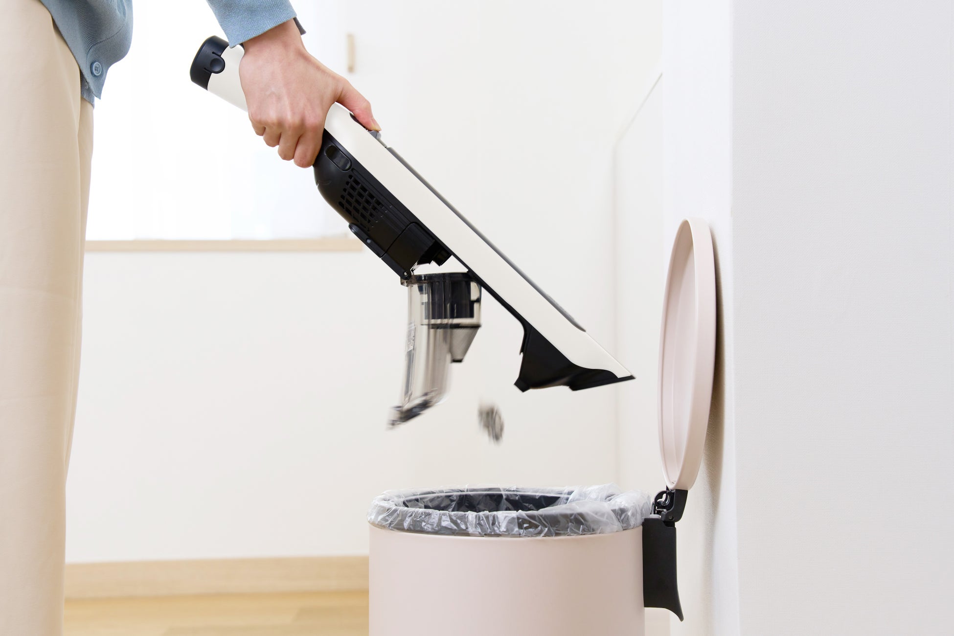 ほこりが飛び散り、手が汚れてしまう掃除機本体からのゴミ捨てが不要になります。