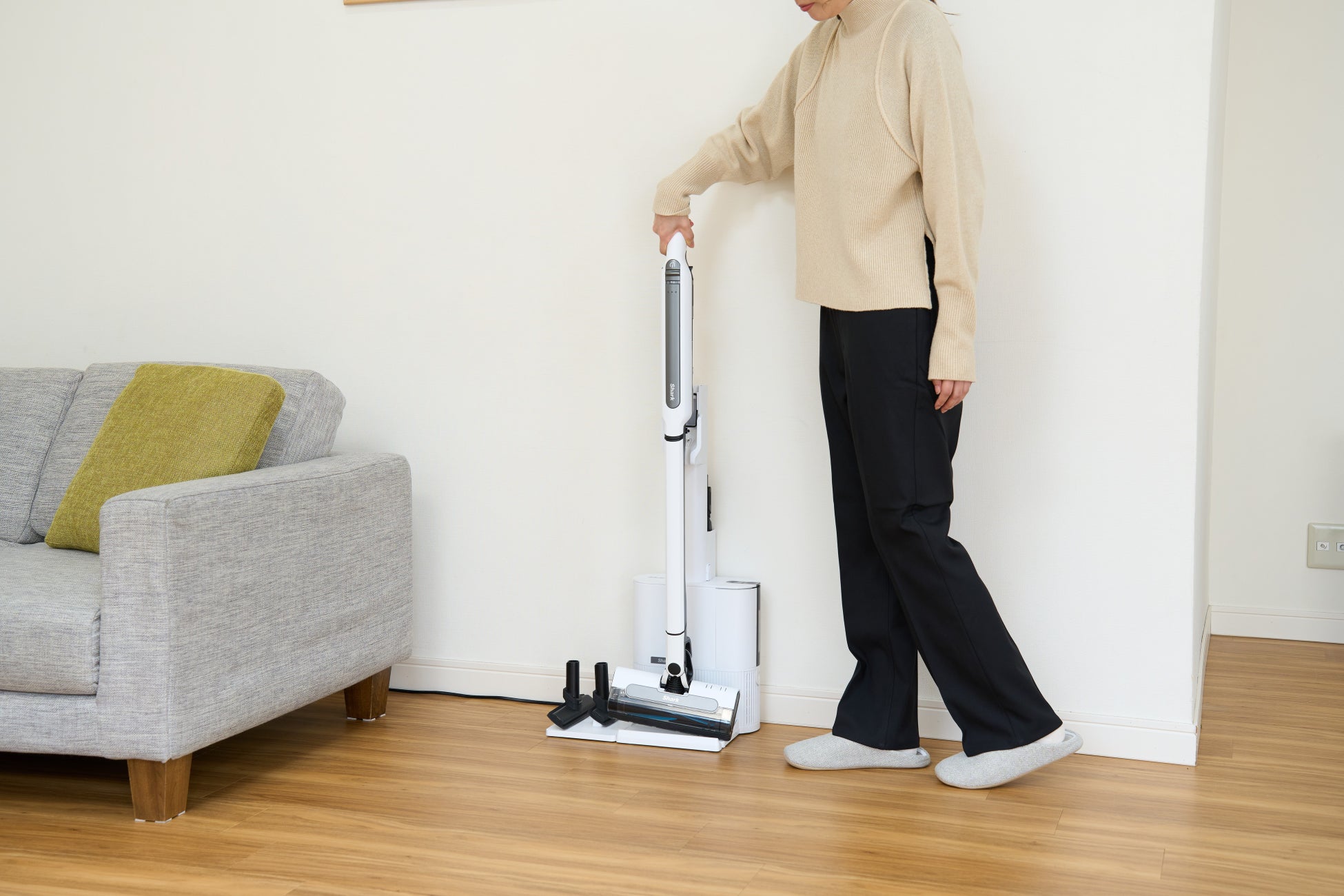「自動ゴミ収集ドック」のゴミ収集機能は、お掃除の手間を最大限軽減し、これまでの掃除の概念を覆す、全く新しい掃除体験を可能にした機能です。毎回ゴミを自動収集することで、手を汚すことなくゴミ捨てができるだけではなく、常に掃除機本体のダストカップにゴミがない状態で気持ちよくお掃除をスタートできます。