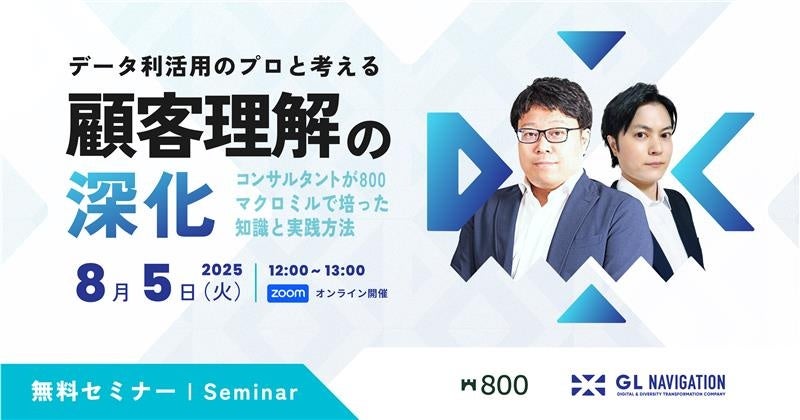 GLナビゲーション株式会社(本社:東京都豊島区、代表取締役社長:神田 滋宣、以下GLナビゲーション)は、2025年8月5日(火)にセミナー「データ利活用のプロと考える 顧客理解の深化 ~コンサルタントが800、マクロミルで培った知識と実践方法~」を主催いたします。