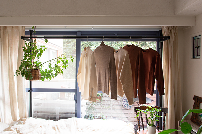 服を洗って干す、洗濯という家事は人々の生活に欠かせません。そんな日常に寄り添いながらも、豊かな生活空間を保ちたい。FRAMESはそんな思いを実現させる、使っている時のことも使っていない時のことも考えた物干しです。