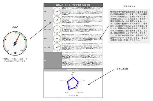50問の設問を通して、大規模サイトを効率的かつ安定的に運⽤するために必要な5つの要素を採点します。運⽤の健康状態を⾒える化し、具体的な改善ポイントを明らかにします。