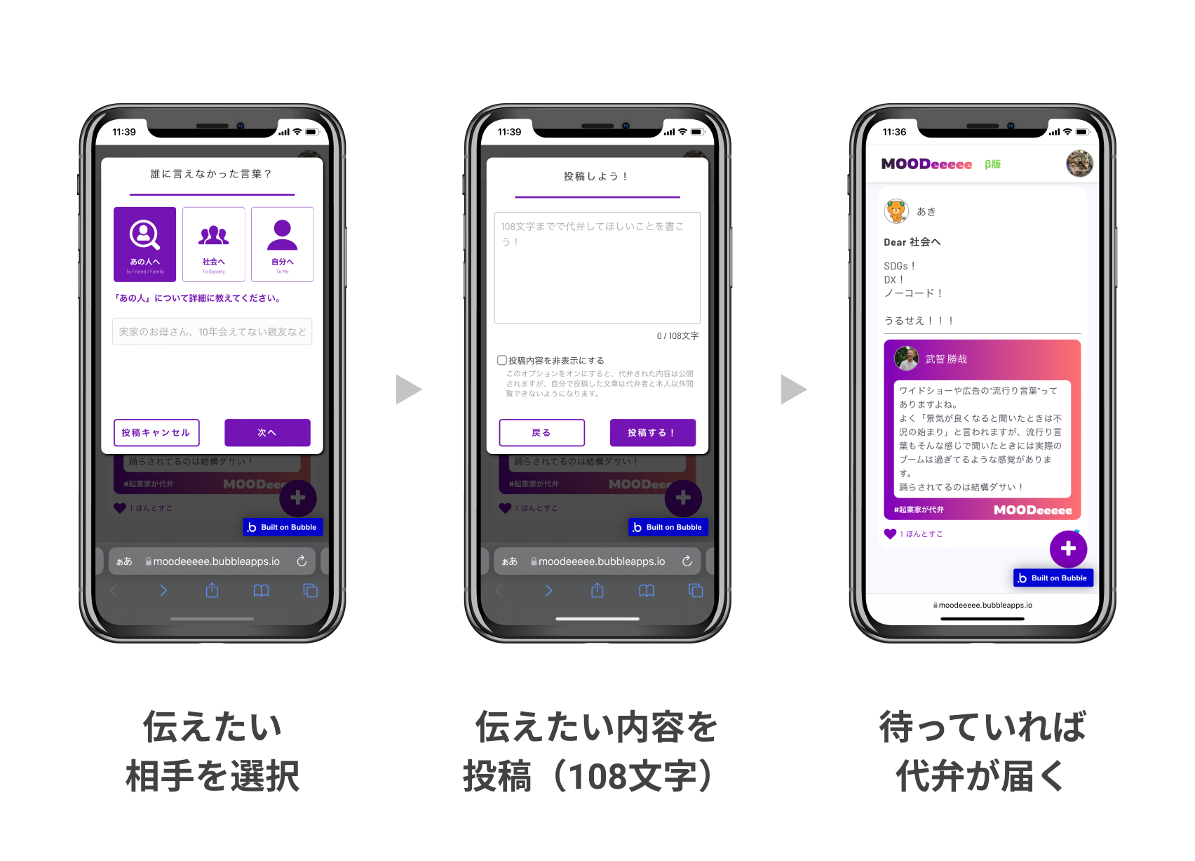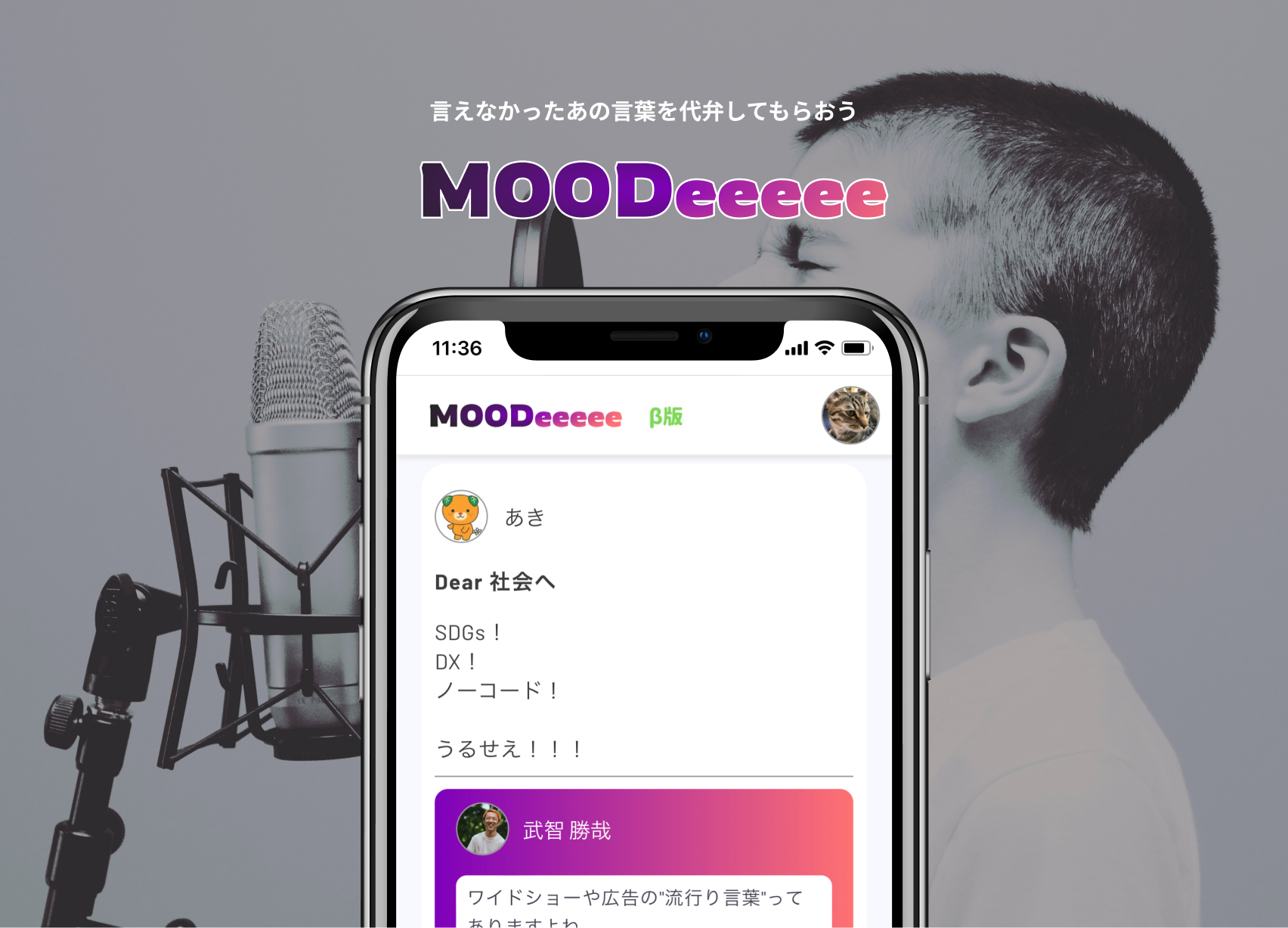 MOODeeeeeを通して、今まで溜め込んでいた言葉や感情を右から左へ受け流すことができるようになれば、ちょっと社会のムードも良くなるはず。そんな願いをサービスに込めてみました。