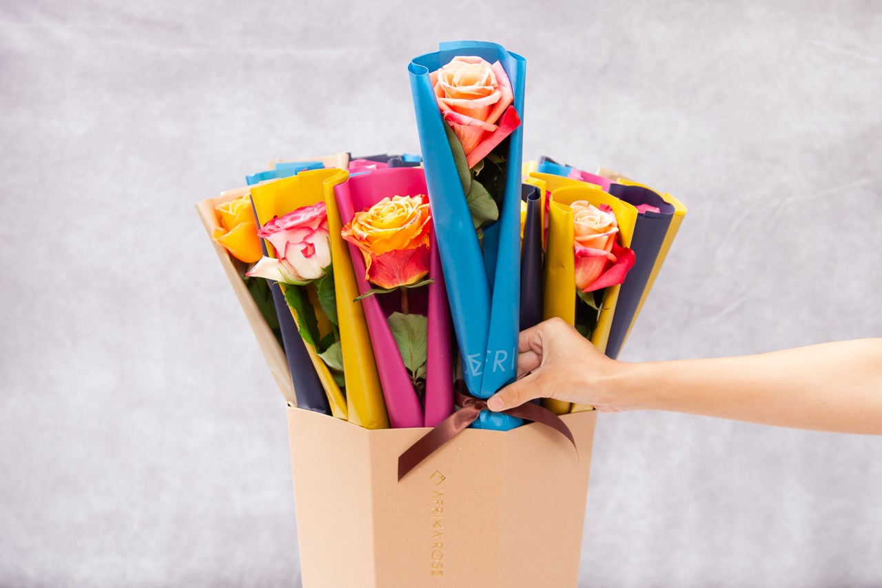 新規出店祝い、周年記念のお祝いの際に贈る、「SDGs」「エシカル」「環境負荷軽減」「贈った後への配慮」「周囲への感謝の循環」全て叶える、地球環境に配慮した循環型祝い花「CELEBRATION ROSE~アフリカローズの祝いバラ~」が新登場。