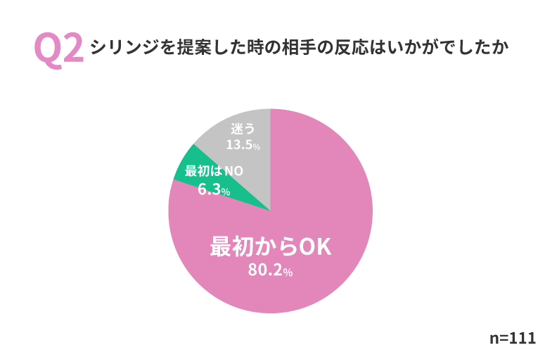 今回のアンケートの結果から、シリンジ法を提案するのは、どちらともなくを含め女性側が約9割でした。