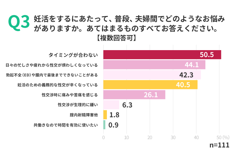 妊活の悩み(複数回答可)では、多い順から下記の結果となりました。
