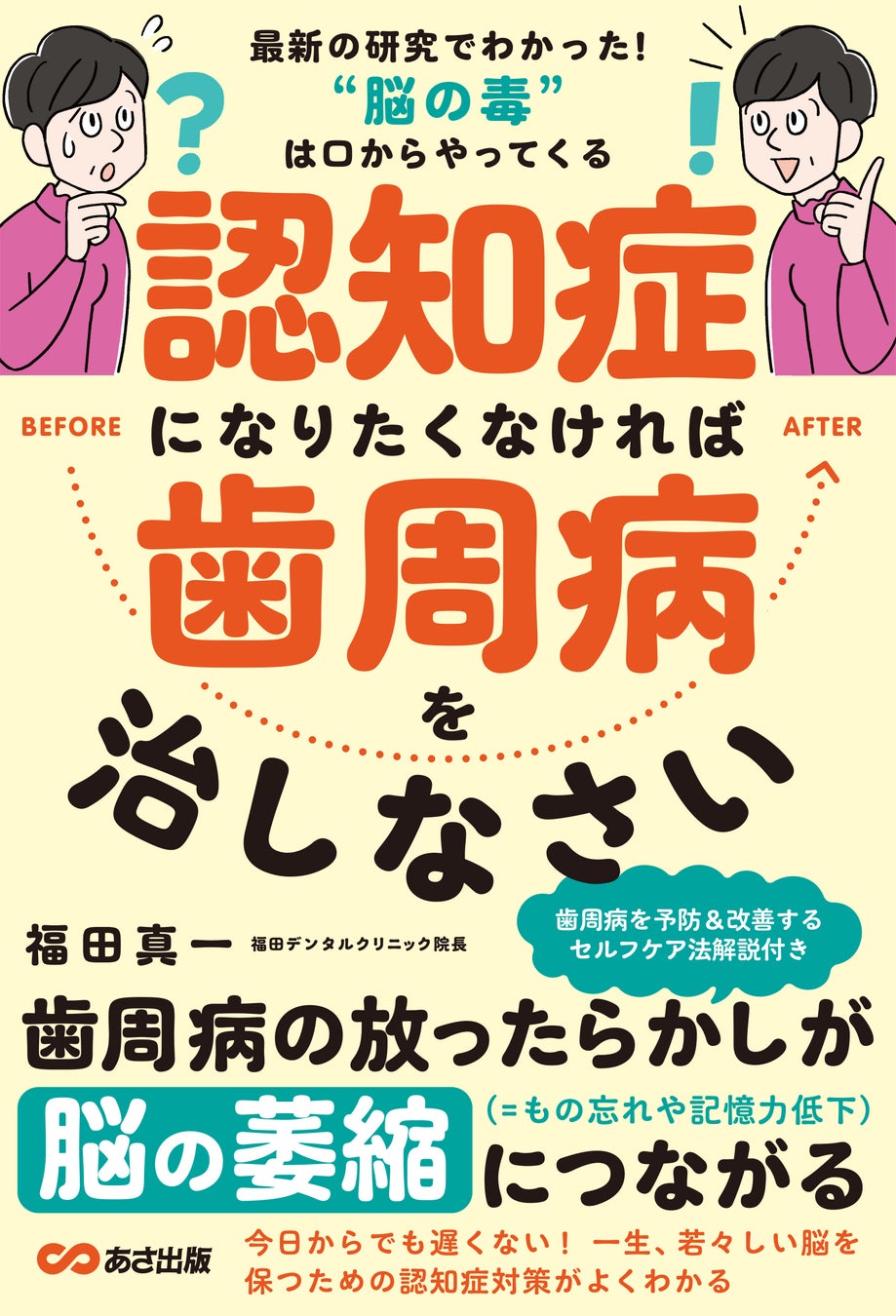 本書は、全国から1万人の患者が訪れる「福田デンタルクリニック」の福田真一院長が、歯周病菌と認知症(アルツハイマー病)の知られざる関係を最新の研究をもとに、わかりやすく解説いたします。なぜ歯周病が認知症を引き起こすのか、そもそも歯周病とはどのような病気なのか、認知症の発症を防ぐためにどのようなオーラルケア&生活習慣の改善を行えばよいのかなどを紹介します。